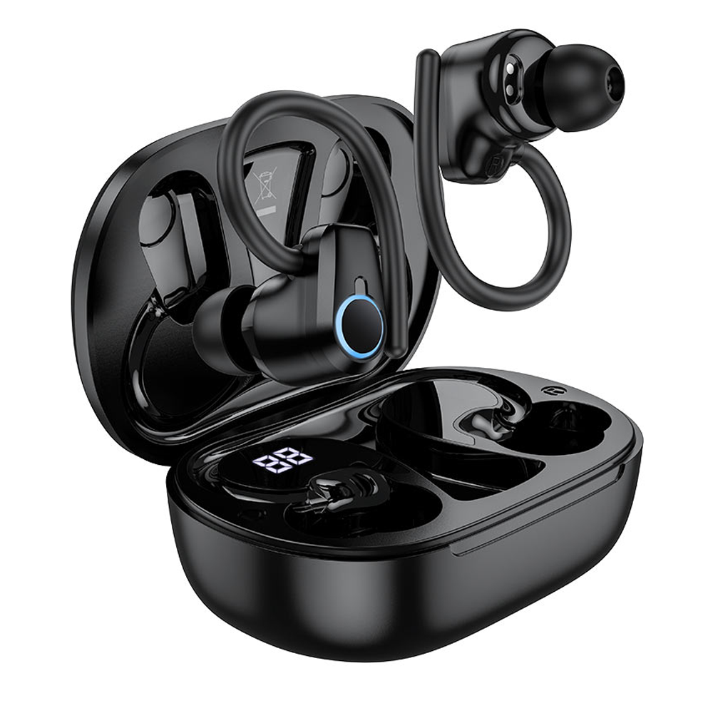 Audífono in-ear inalámbrico con gomita de diseño ergonómico, pequeño y ligero.
