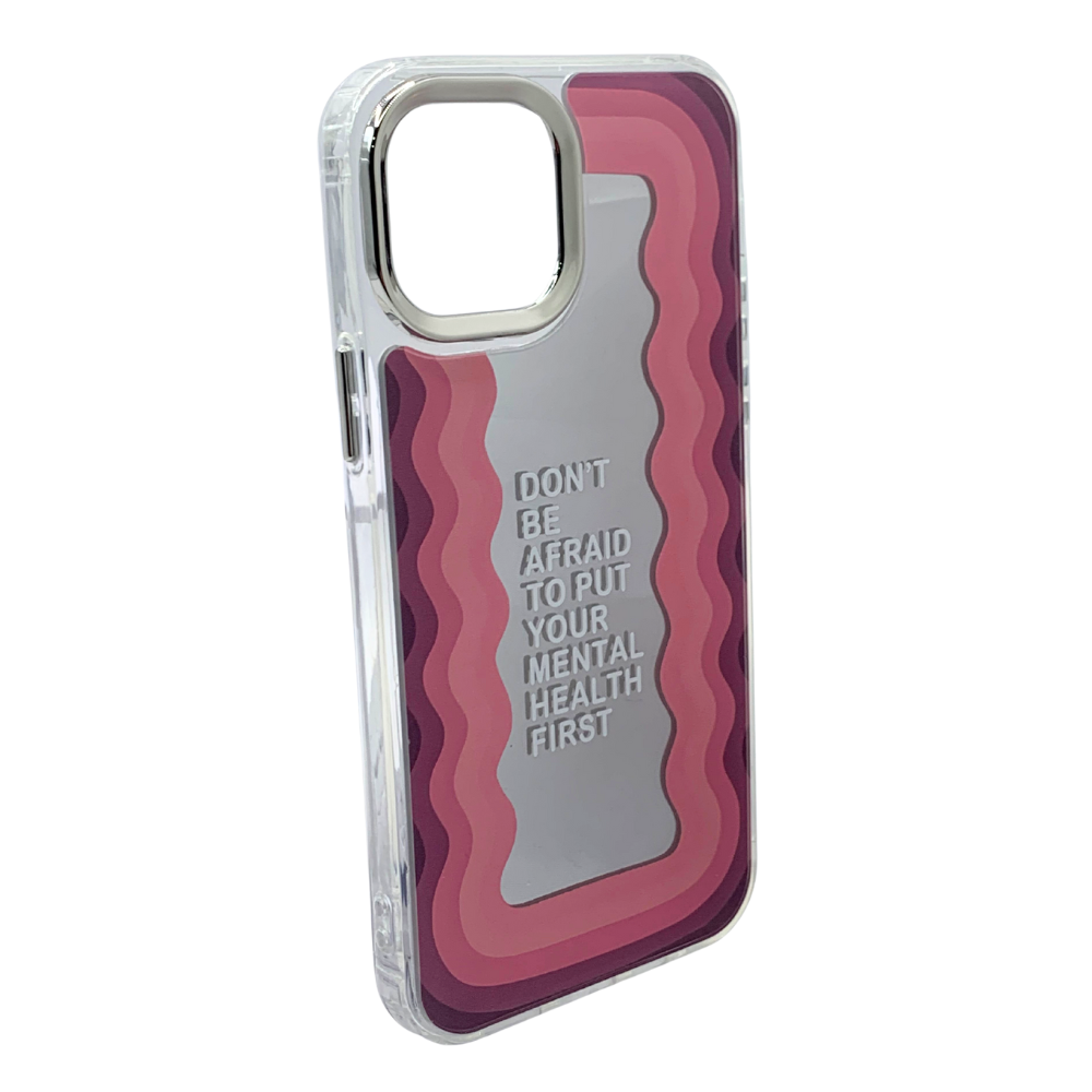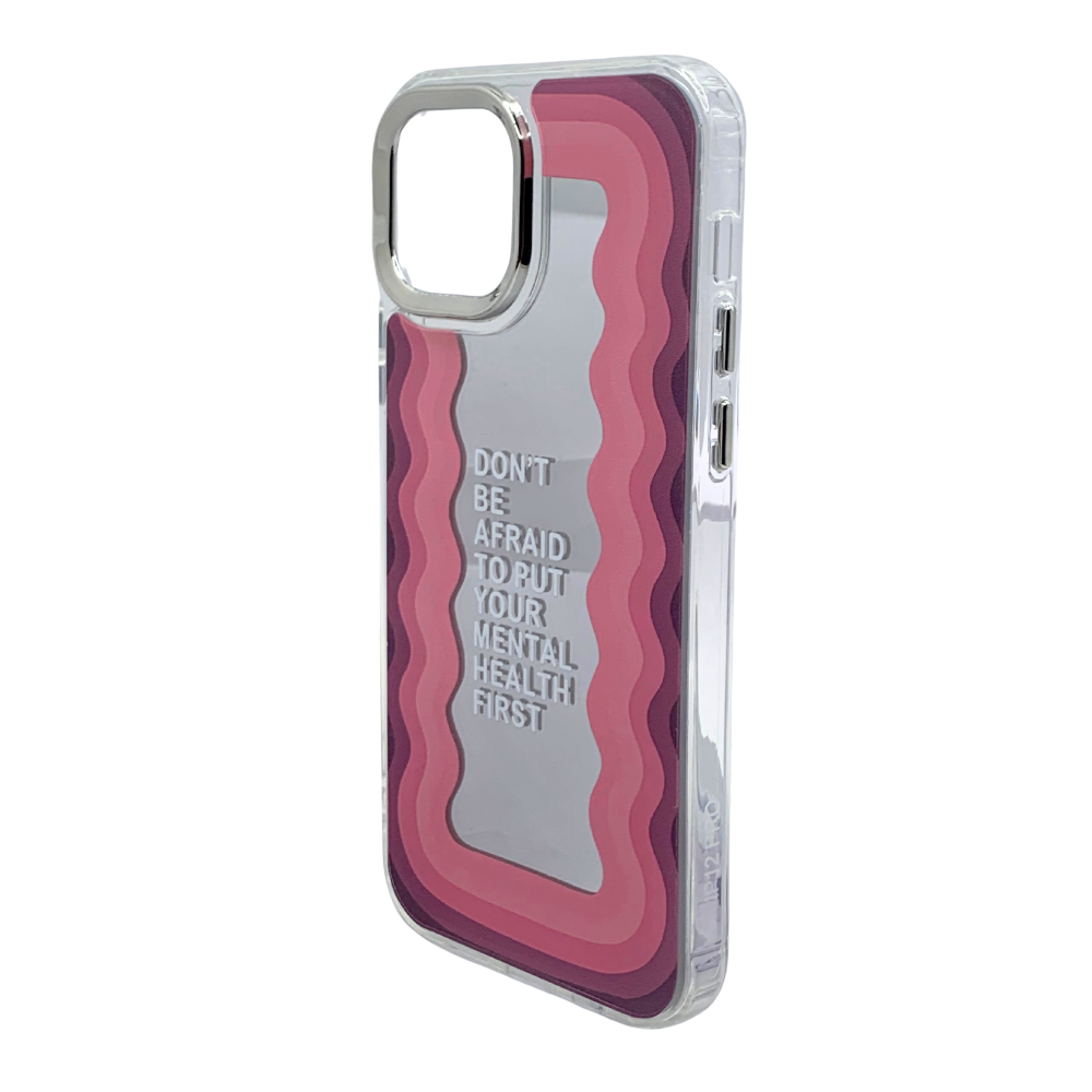 ¿Buscas una carcasa que no solo proteja tu celular, sino que también te impulse a priorizar tu salud mental? Nuestra Carcasa Exclusiva para iPhone 12 y iPhone 12 Pro combina un diseño moderno y elegante con un mensaje poderoso: "DON'T BE AFRAID TO PUT YOUR MENTAL HEALTH FIRST". Presenta un atractivo fondo de ondas concéntricas en tonos rosa y burdeos, enmarcando un sofisticado centro con efecto espejo donde el inspirador texto en plata cobra protagonismo. Además, su borde transparente mantiene la estética minimalista. ¡Es el accesorio perfecto para recordarte lo importante que eres, con un toque chic para tu día a día en Chile!