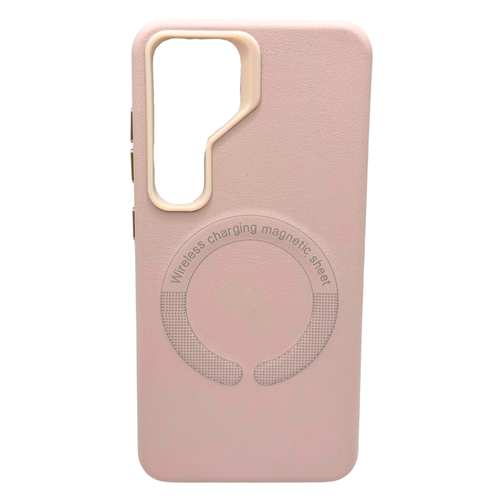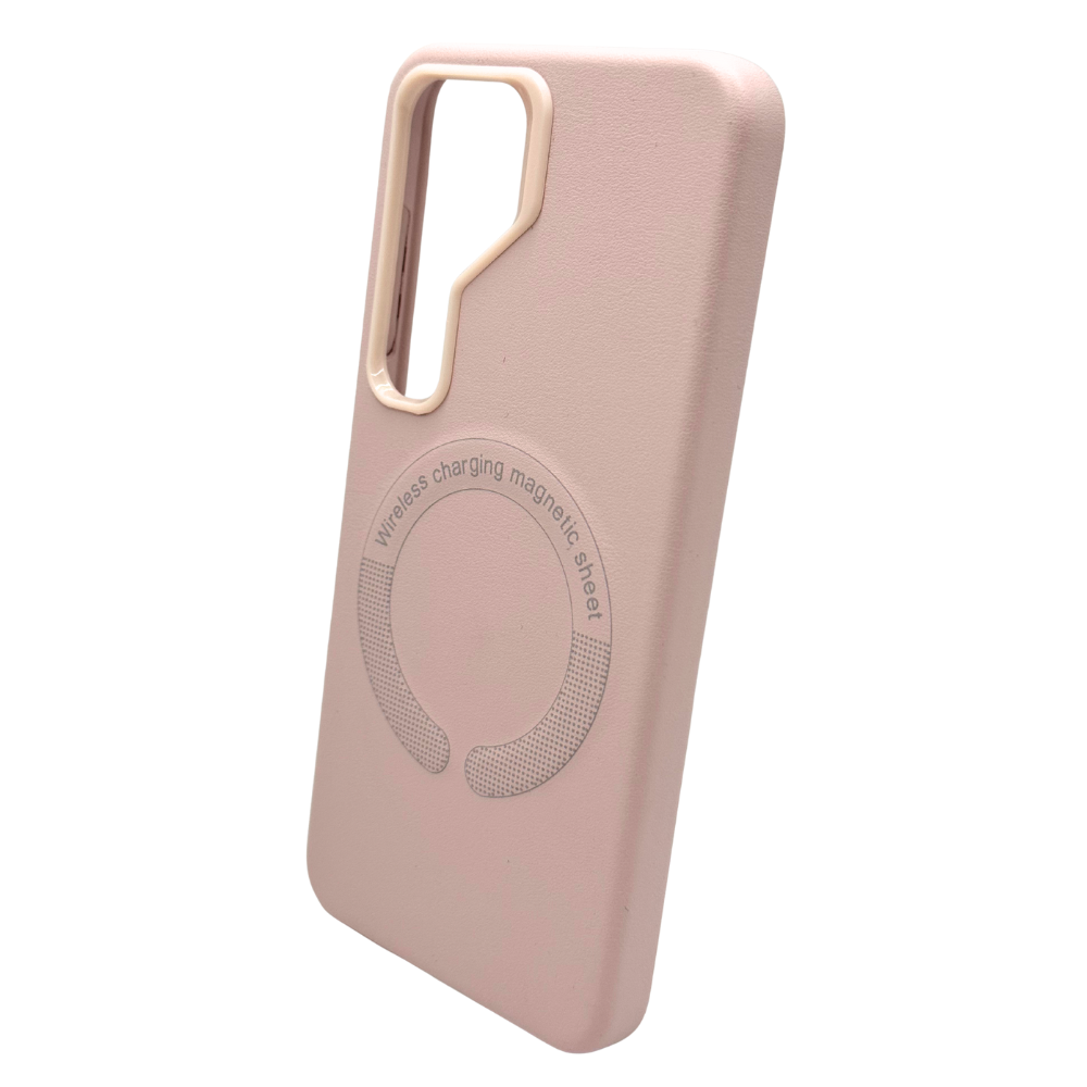 Carcasa magnética para Samsung Galaxy S24 con interior de gamuza protectora. Compatible con carga inalámbrica y soportes magnéticos, ideal para mantener tu smartphone siempre seguro y con estilo. Diseño delgado, elegante y disponible en tonos rosa y lila. Una opción perfecta para quienes buscan protección premium sin perder diseño.
