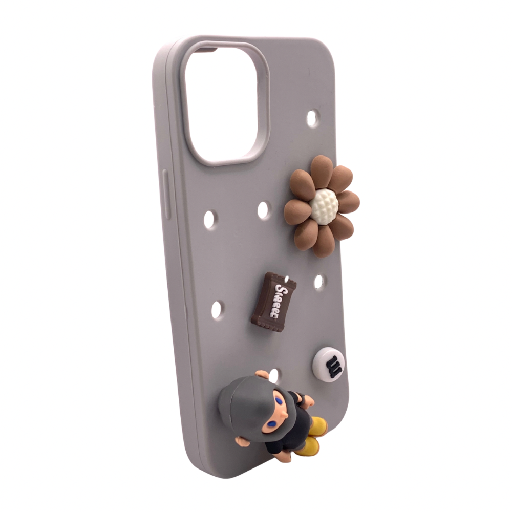 - Diseño Original Estilo Crocs: Inspirada en los icónicos zuecos, esta funda gris con orificios ofrece una estética moderna y llamativa.