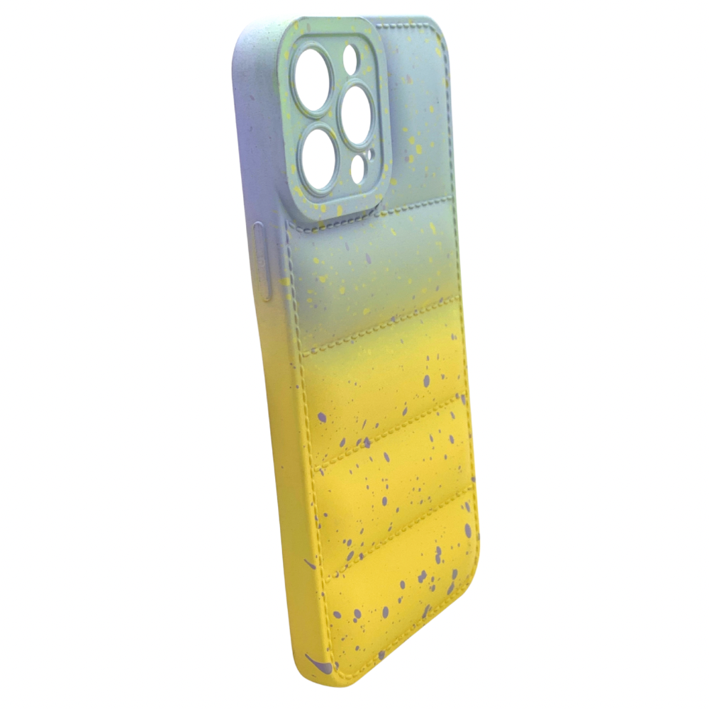 Protege tu iPhone 13 Pro Max con un estilo único y una sensación de comodidad. Esta carcasa destaca por su diseño acolchado, que no solo le da un look moderno y vanguardista, sino que también ofrece una protección extra contra impactos. El efecto degradado de colores y las salpicaduras de pintura le añaden un toque artístico y original que hará que tu teléfono sobresalga. Es la funda perfecta para quienes buscan una protección robusta con un diseño que capture la atención.