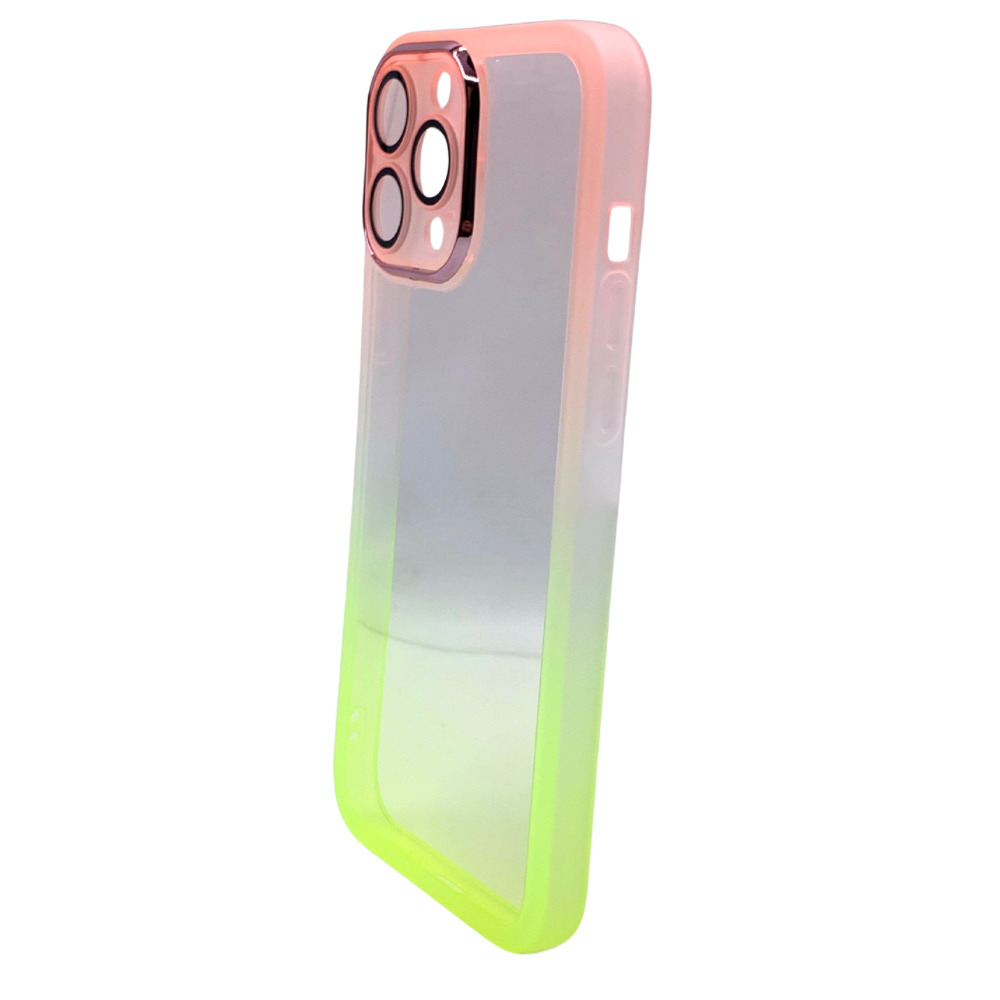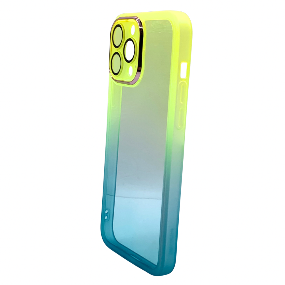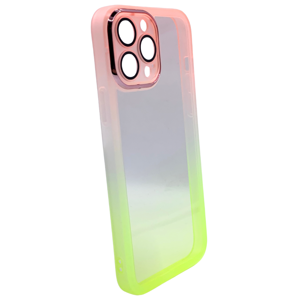 Dale a tu iPhone 13 Pro Max un toque de color y sofisticación con esta elegante carcasa transparente de efecto degradado. Su diseño fusiona dos colores de manera sutil, creando un look moderno y llamativo que resalta el diseño original de tu teléfono. El borde metálico que rodea la cámara no solo añade un toque de lujo, sino que también ofrece una protección extra a las lentes. Es la combinación perfecta de moda y funcionalidad, ideal para quienes buscan un accesorio que destaque por su originalidad.