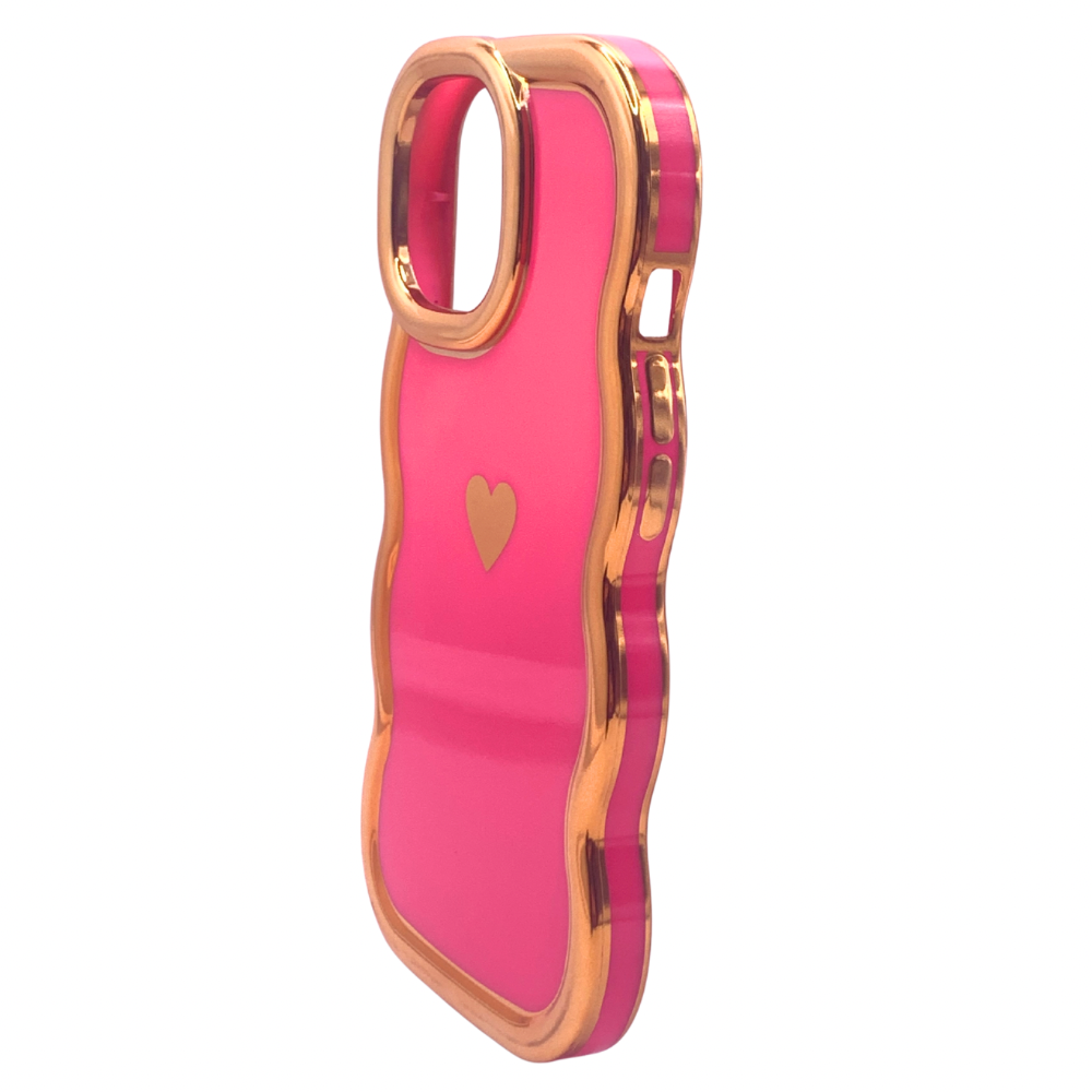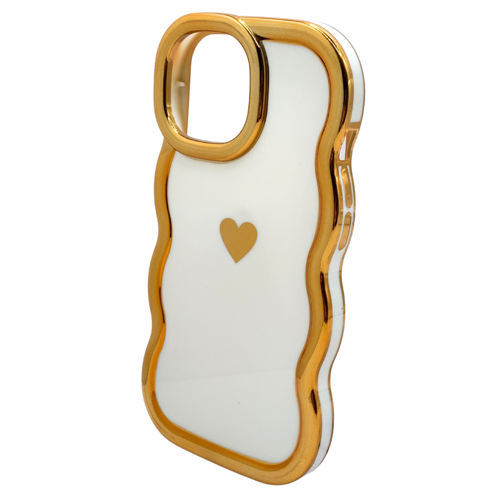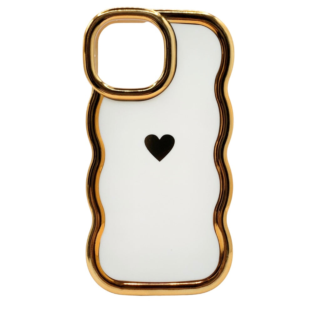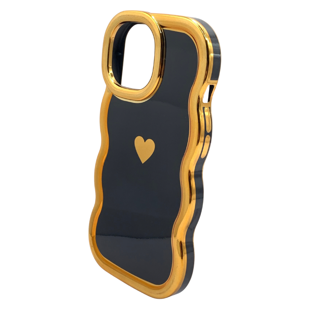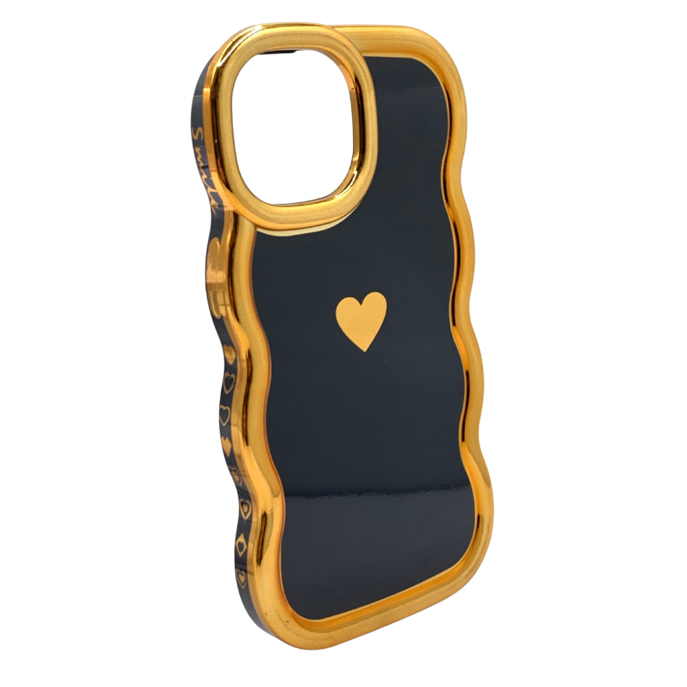 Dale un toque de elegancia y originalidad a tu nuevo iPhone 15 con esta llamativa carcasa de diseño ondulado y borde dorado. Su forma única y moderna, combinada con un acabado brillante, harán que tu teléfono destaque. Un delicado corazón adorna la parte posterior, añadiendo un toque de dulzura y personalidad. Fabricada con materiales de alta calidad, esta funda protectora no solo es estilosa, sino que también ofrece una buena defensa contra golpes y arañazos. El borde dorado elevado protege la pantalla y la cámara, mientras que el diseño ergonómico asegura un agarre cómodo y seguro para tu iPhone 15.