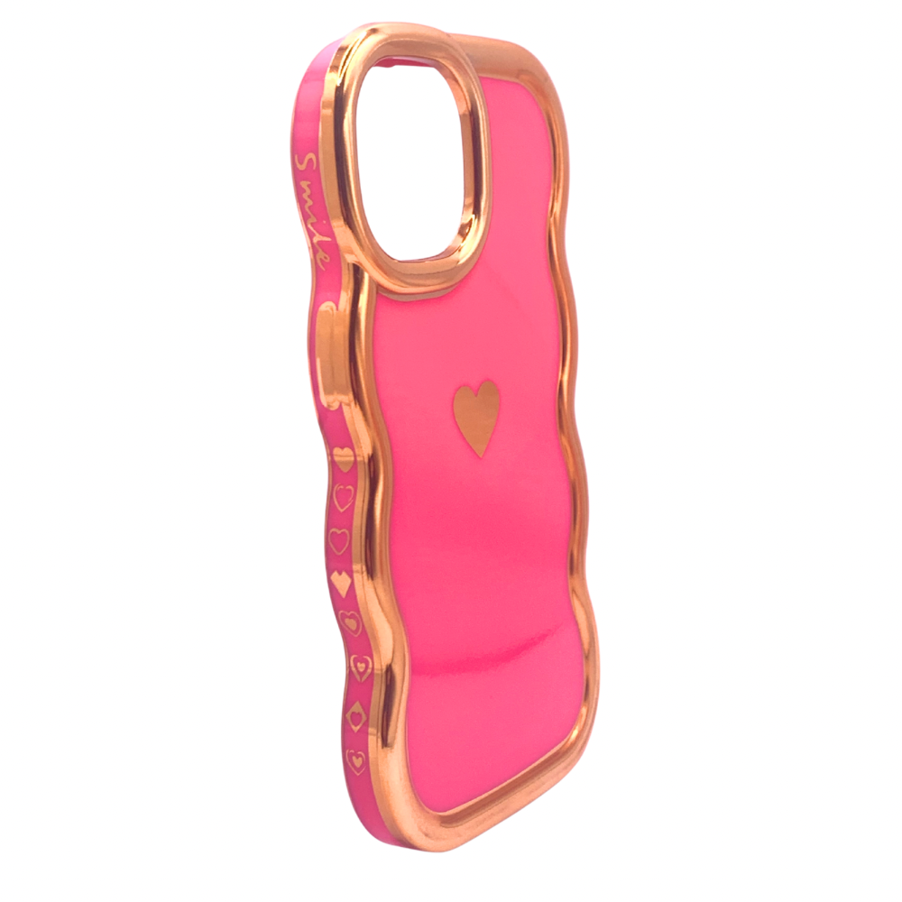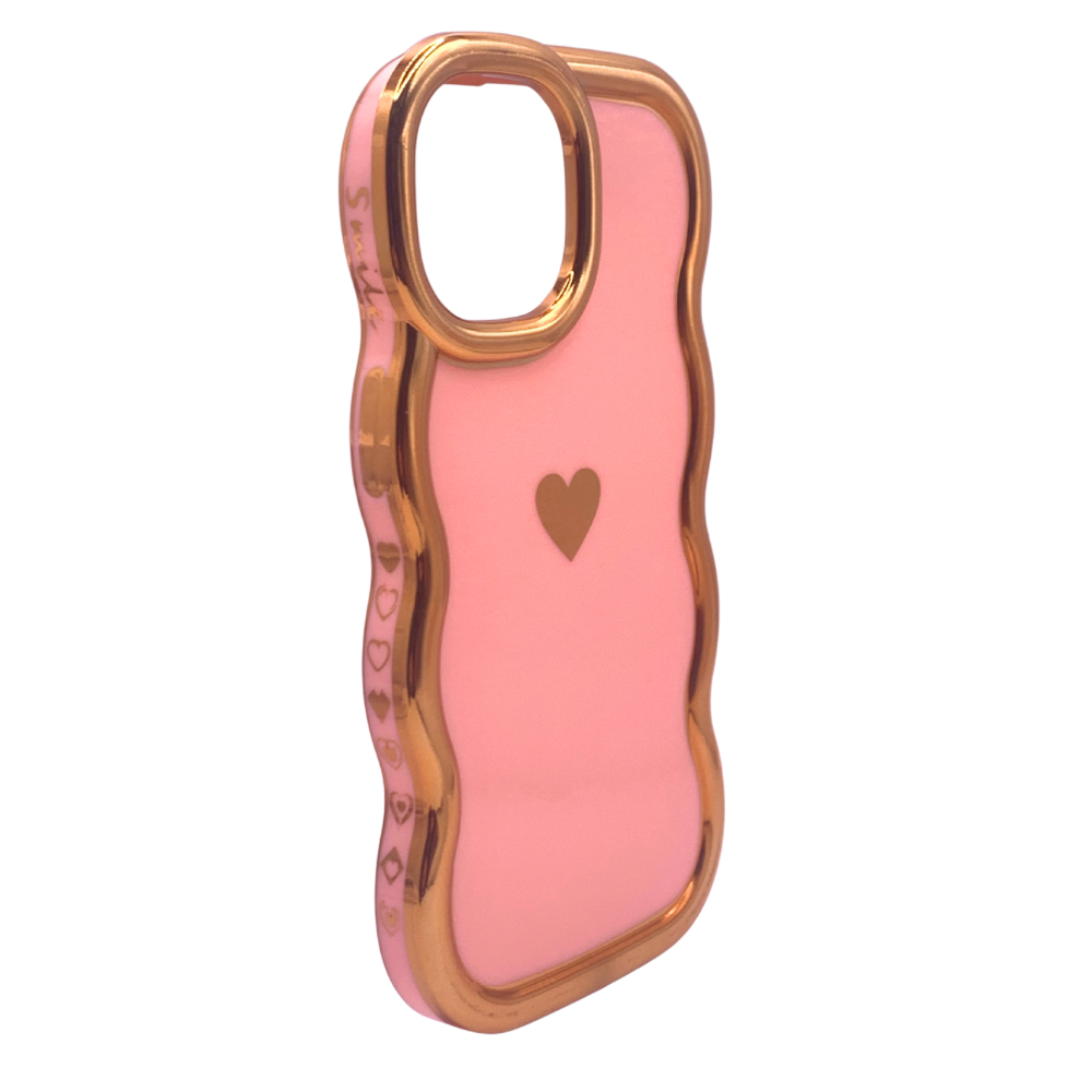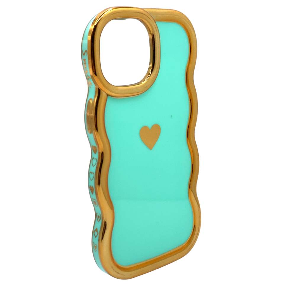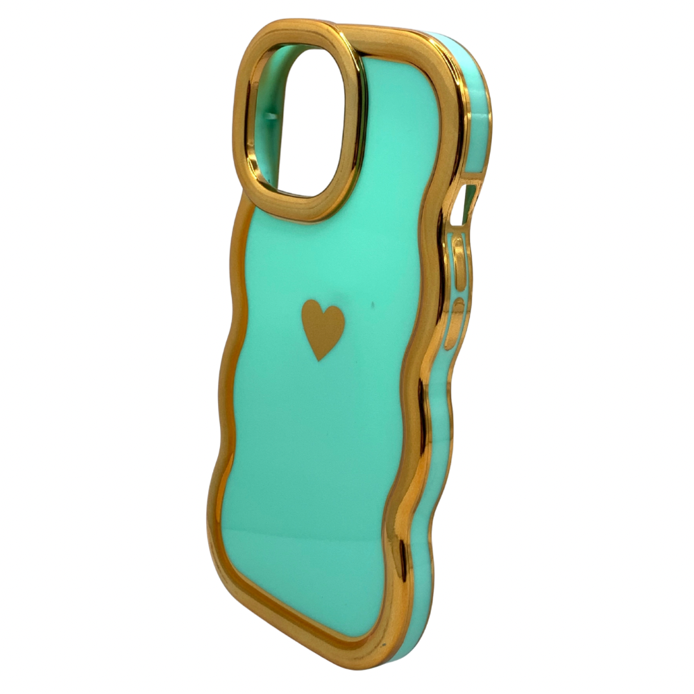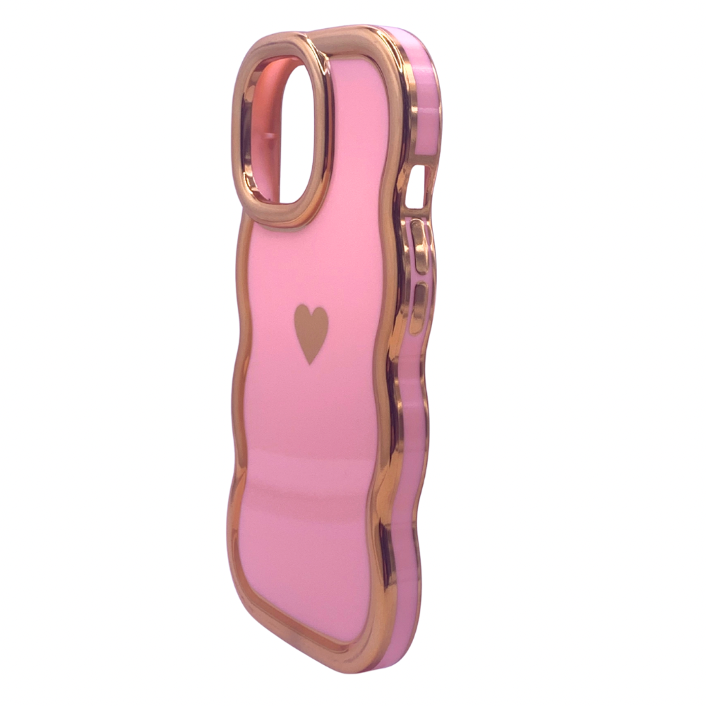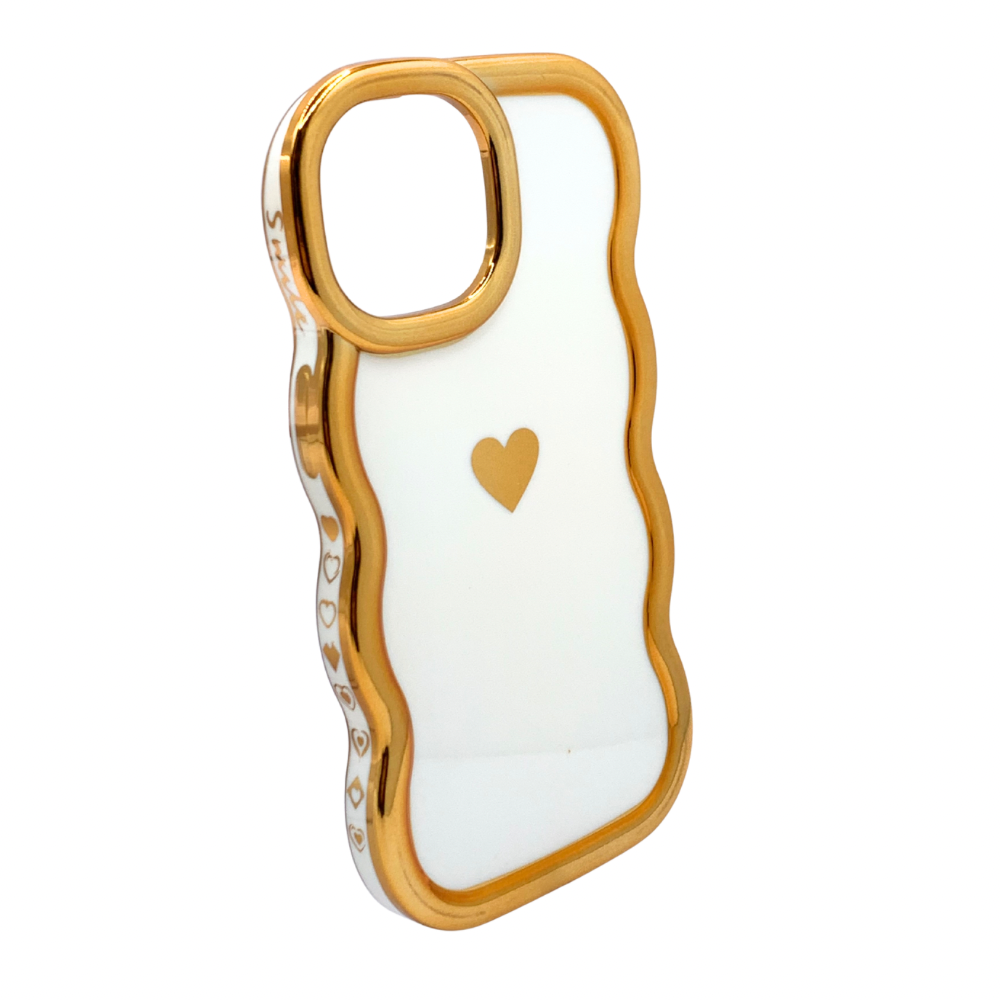 Dale un toque de elegancia y originalidad a tu nuevo iPhone 15 con esta llamativa carcasa de diseño ondulado y borde dorado. Su forma única y moderna, combinada con un acabado brillante, harán que tu teléfono destaque. Un delicado corazón adorna la parte posterior, añadiendo un toque de dulzura y personalidad. Fabricada con materiales de alta calidad, esta funda protectora no solo es estilosa, sino que también ofrece una buena defensa contra golpes y arañazos. El borde dorado elevado protege la pantalla y la cámara, mientras que el diseño ergonómico asegura un agarre cómodo y seguro para tu iPhone 15.
