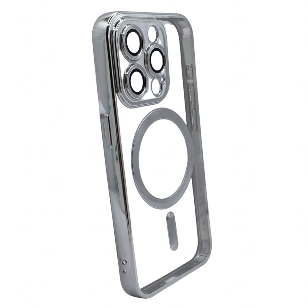 Protege tu iPhone 15 con esta funda que combina un diseño elegante con tecnología avanzada. Su estructura transparente de alta calidad permite lucir el color original de tu dispositivo, mientras que el distintivo borde metálico y el anillo MagSafe le confieren un toque de modernidad y sofisticación. Es el accesorio perfecto para quienes buscan una protección robusta sin sacrificar la funcionalidad y el estilo.
