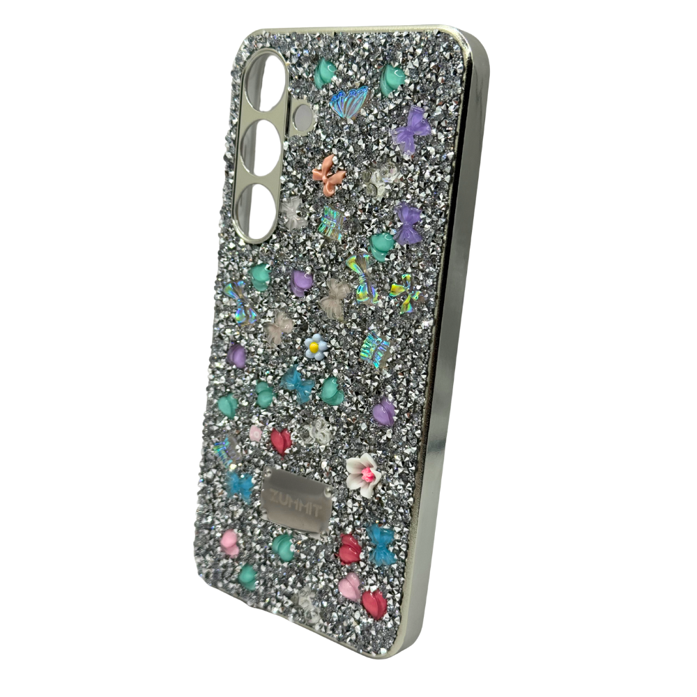 Brilla con estilo y protege tu Samsung Galaxy S24 Plus con la carcasa ZUMMIT "Diamond Sparkle". Su diseño único con microcristales y delicados encantos 3D (mariposas, corazones, flores) le da un toque de glamour inigualable.