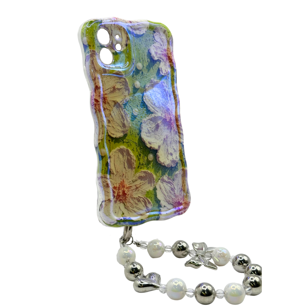 Eleva el estilo de tu iPhone con nuestra deslumbrante carcasa de efecto tornasol, que captura la luz creando un arcoíris de colores. Su diseño floral único te transportará a un jardín mágico, mientras que la superficie con textura añade un toque moderno y original. ¡Pero eso no es todo! Con tu compra, recibe un exclusivo strap de perlas y dijes metálicos de regalo, perfecto para llevar tu teléfono de forma segura y con estilo.