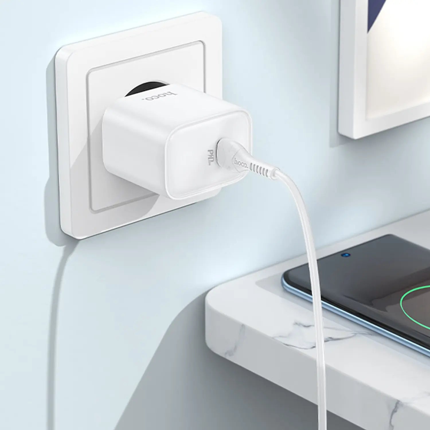 Cargador Casa Hoco DC67 PD20W Cable Tipo C a Tipo C Blanco - SEC