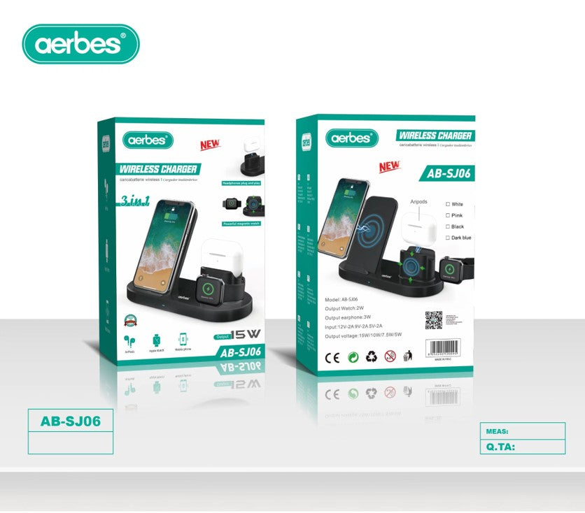 Estación de carga inalámbrica '-3 en 1 El cargador inalámbrico puede cargar teléfonos habilitados para Qi, Apple Watch y Airpods simultáneamente.