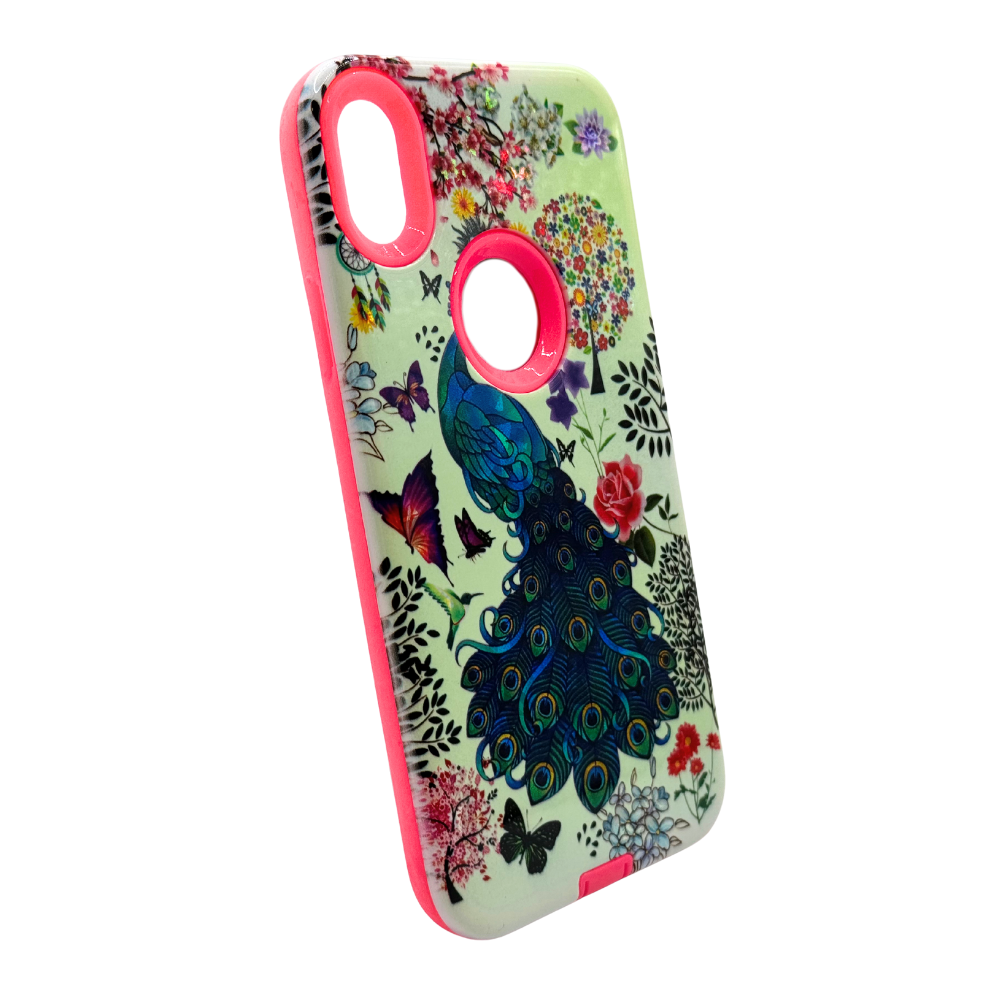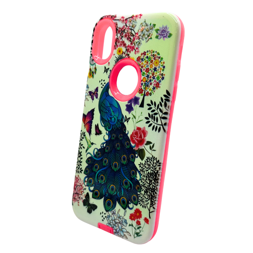 Añade un toque de sofisticación natural a tu iPhone XR con esta exquisita carcasa con diseño de pavo real. Su vibrante ilustración presenta un majestuoso pavo real rodeado de delicadas flores y mariposas, creando un estilo elegante y femenino. Esta funda protectora premium para iPhone XR no solo realza la belleza de tu teléfono móvil Apple, sino que también lo protege de golpes y rayones. Con un calce perfecto y acceso cómodo a todos los botones, es el accesorio de moda ideal para quienes buscan carcasas originales y con un diseño inspirado en la naturaleza en Chile. ¡Lleva la belleza natural contigo!
