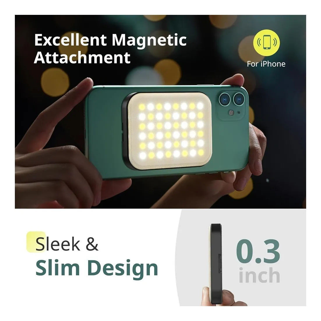 Su fijación magnética Magsafe asegura una conexión instantánea y segura a tu iPhone, mientras que el clip universal incluido permite usarlo con cualquier modelo de teléfono. Con ajuste de brillo y temperatura de color, podrás personalizar la iluminación para obtener el tono ideal en cada toma. ¡No más sombras indeseadas!